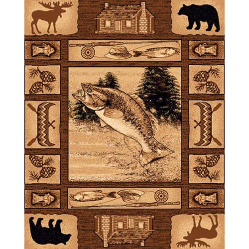 DonnieAnn 5x8' Lodge Area Rug, Brown / Fish - Canoe Design Description