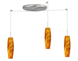 Collection: Tutu, Material: Brass/Steel, Height from Outlet Box: 4.00", Lamp: 3-50w bulb(s), UL: Suitable for damp locations, - Desc: the lamp, GU-24 base. Non-dimmable. Lamp included, see back pg. DIFFUSER Shade shall be handcrafted glass of various decors. 3.5 Dia. x 11.25 HOptional wireform cage is 0.125 dia. tubing with powder coat finish. CORD Standard is 10 SVT-type, complete with 5 decorative sleeve at the socket holder. Jacket coordinates with metal finish. Longer 15 SVT cord length available, see next page. CANOPIES Available on 1, 3 or 6 light canopies, shown on next page. Plated stamped steel construction. No. of Rods: 4 / Cano